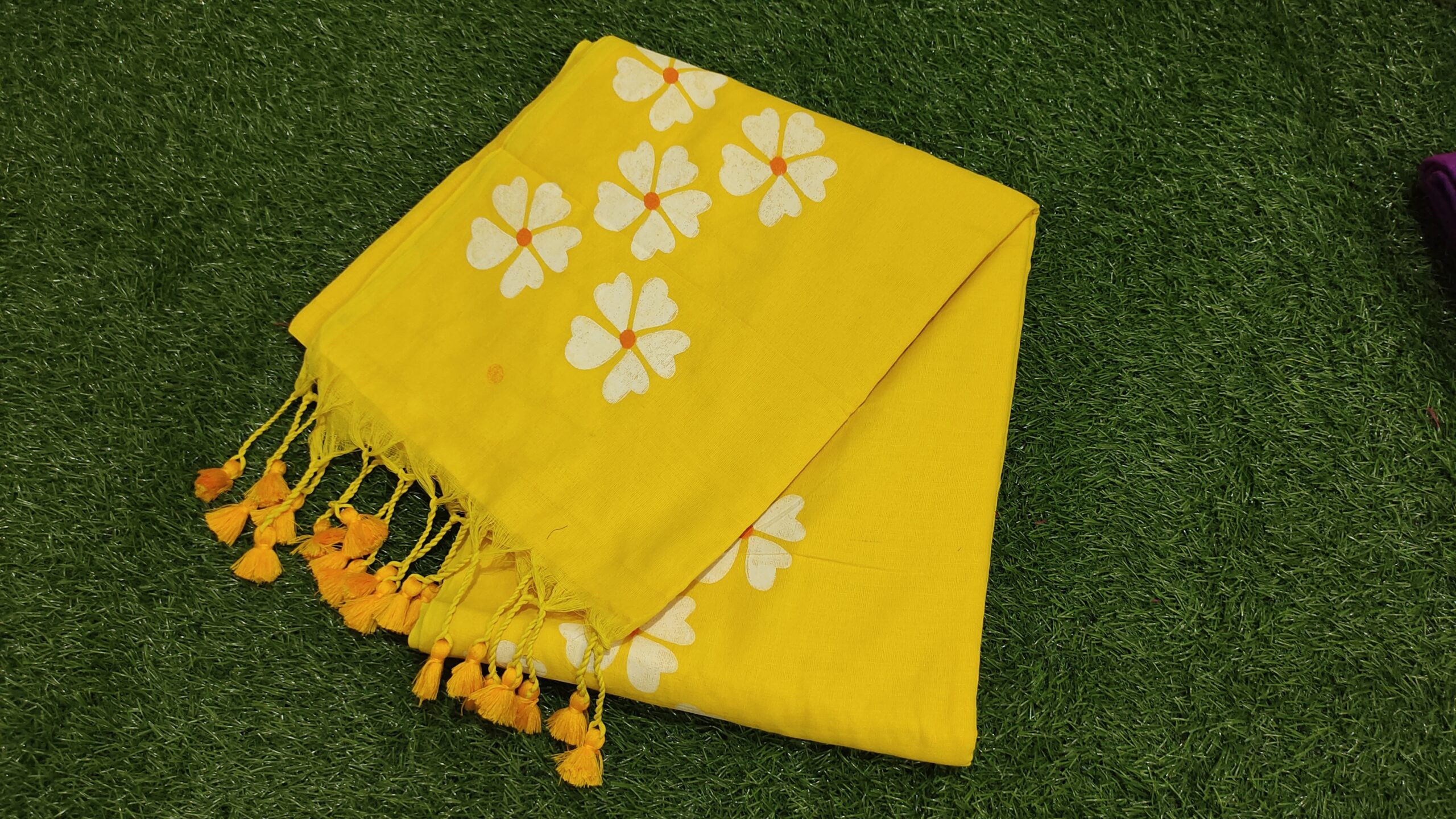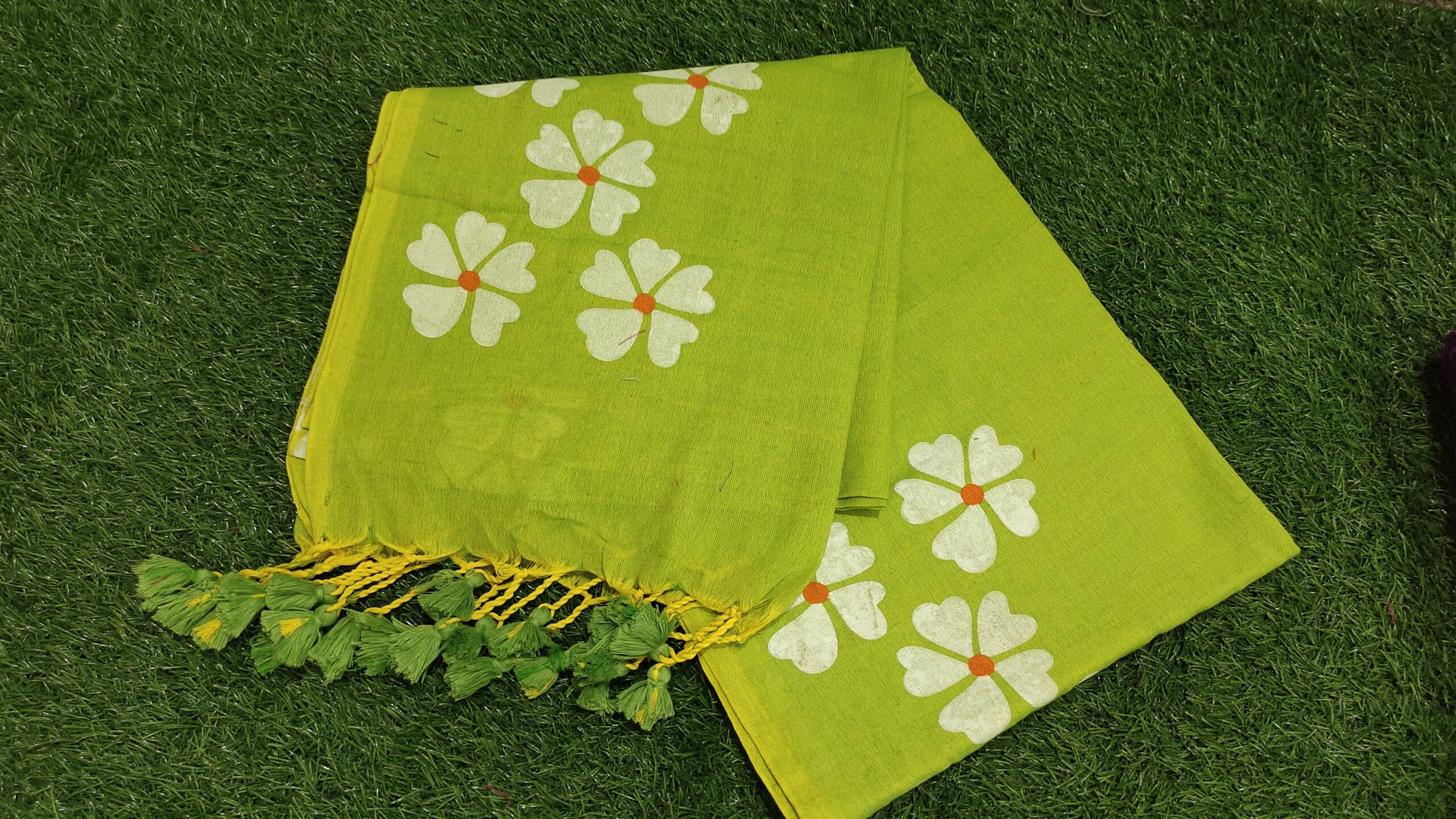 Hand-Painted Flower Design Khadi Cotton Color Saree