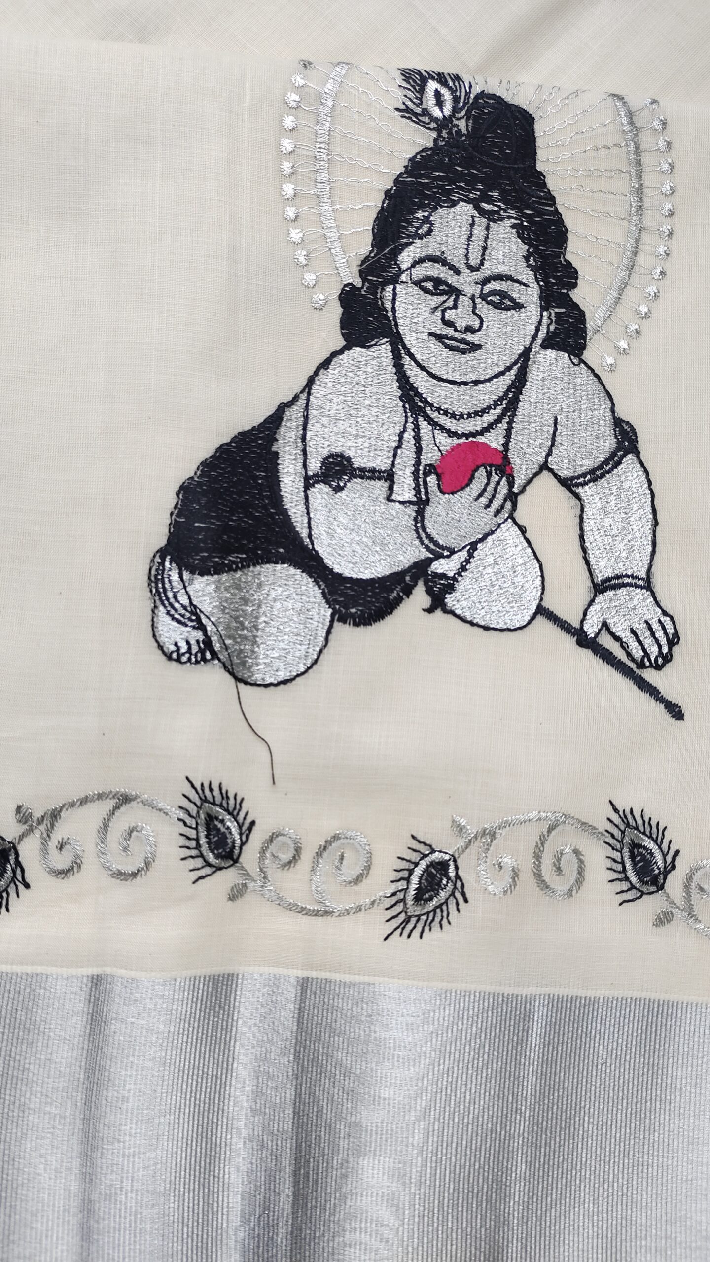 Onam Set Sarees – Traditional Kerala Kasavu Cotton Saree with SreeKrishna Design
